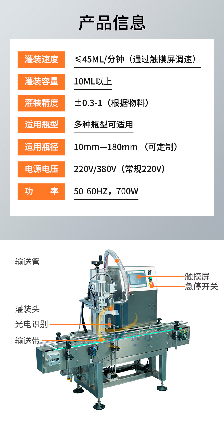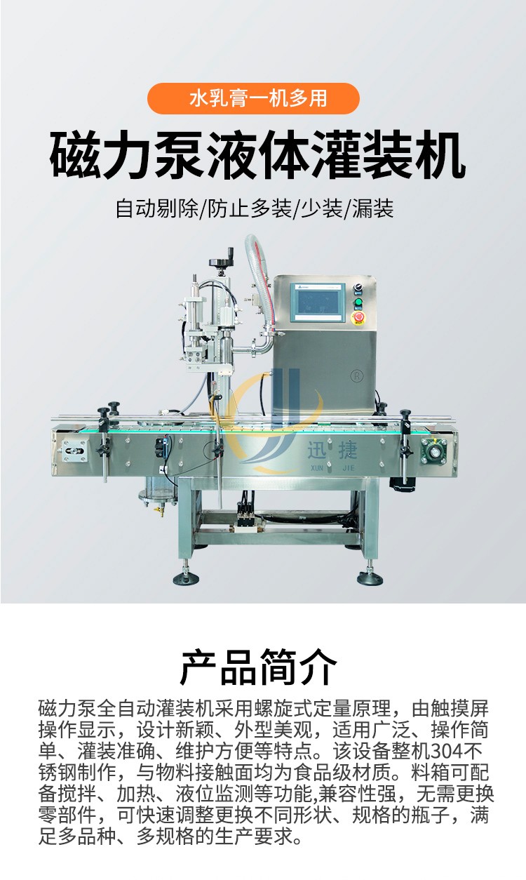 磁力泵全自動灌裝機采用螺旋式定量原理,由觸摸屏操作顯示,設計新穎、外型美觀,適用廣泛、操作簡單、灌裝準確、維護方便等特點。