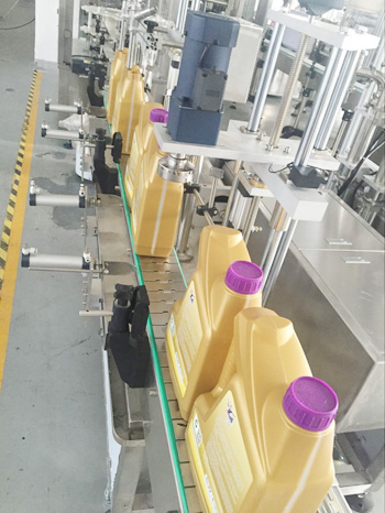 設備描述:潤滑油灌裝旋蓋一體機為活塞式計量方式。計量范圍為1升-5升,離合式旋蓋結構,確保旋蓋合格率高,不傷蓋。本設備為灌裝旋蓋一體機,結構緊湊,性價比高。該型號灌裝機適用于醫(yī)藥、日化、食品、農藥及特殊行業(yè),是對酒精等液體進行灌裝的理想設備。