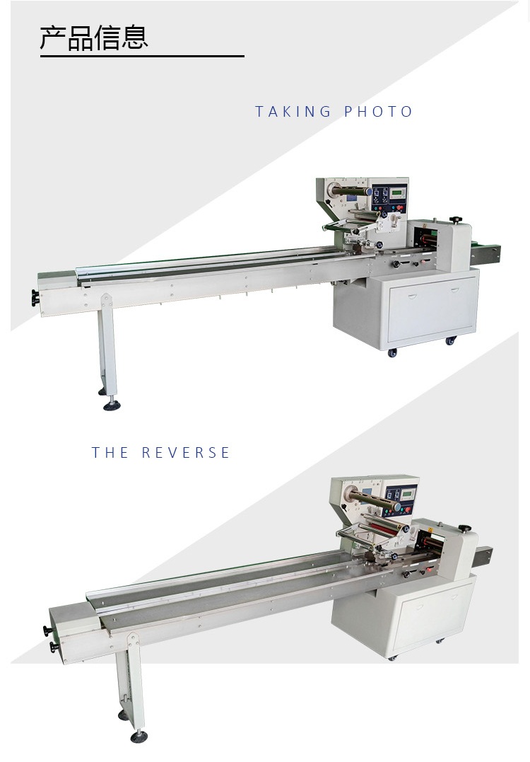 該枕式包裝機可用于餅干、月餅、蛋黃派、米餅、雪糕、方便面、巧克力等塊狀產(chǎn)品的包裝,特別適合于小批量單一產(chǎn)品的包裝。